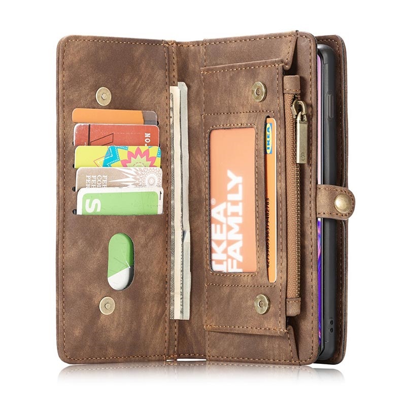 CaseMe 2-i-1 plånboksfodral har 11 fantastiska kortplatser, 3 platser för kontanter och till och med ett litet fack med ett blixtlås. Plånboksfodralet själv är fodrat med spaltläder som ger en elegant, förstklassig look och känsla.