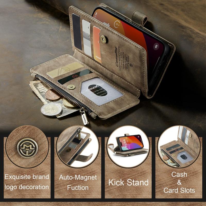 Caseme C30 multifunktionella plånboksfodral till iPhone 16 Pro ger ett mångsidigt skydd och en exklusiv raffinerad design. Detta eleganta fodral är tillverkat av kvalitativ polyuretan, förstärkt med ett stöttåligt inre TPU-skal som håller om din iPhone 16 Pro på ett perfekt sätt. Caseme C30 plånboksfodral är dessutom utrustat med flera kortfickor, ett stort fack för kontanter och en yttre dragkedjeficka, som alltsammans hålls ihop med magnetisk stängning.