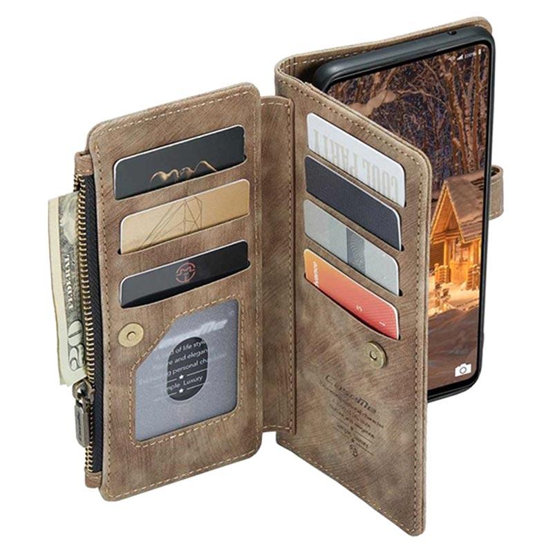 Detta multifunktionella plånboksfodral till Samsung Galaxy A33 5G kommer att lämna dig mållös. Det är designat med tio kortfickor, ett kontanttack och en dragkedjeficka – tillräckligt för att du ska kunna bära med dig alla dina viktigare saker. Det är tillverkat av kvalitativ polyuretan och inre TPU-material. Dina prylar hålls säkra med hjälp av den magnetiska stängningen. Fodralet kommer också med en handrem för säkrare bärning och det kan användas som stativ för en bättre handsfree-upplevelse när du tittar på videor.