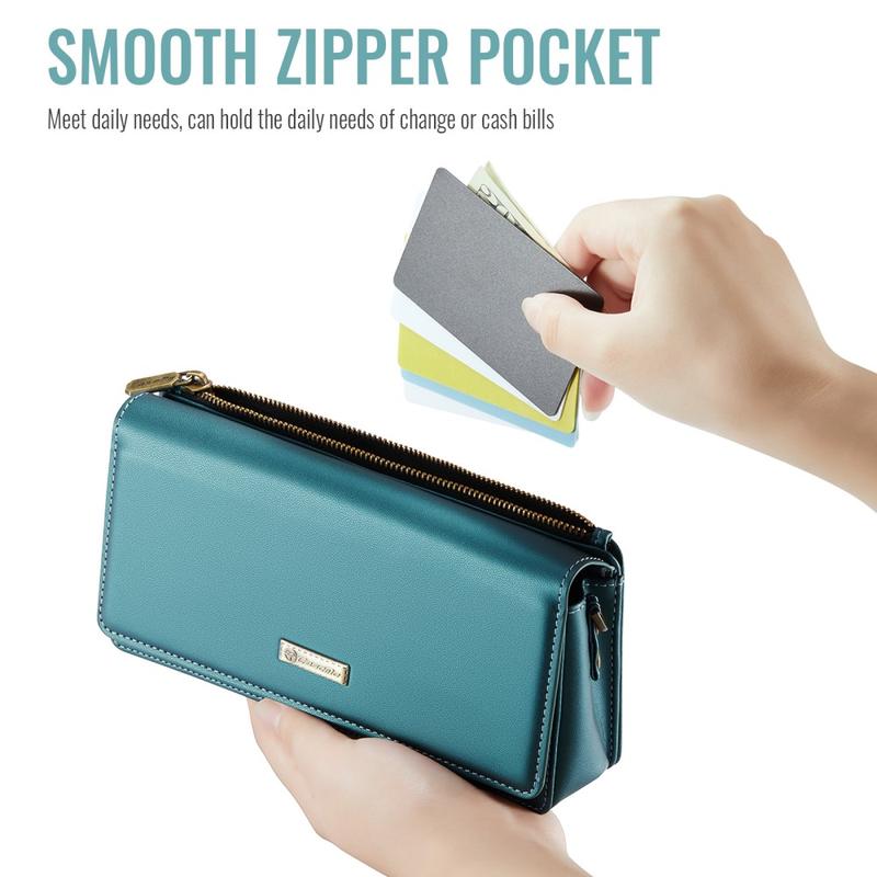 Caseme Me30 är praktiskt utformad och har 7 kortfack, 1 sedelfack, 1 blixtlåsförsedd ficka och en dedikerad fotohållare som håller alla dina tillhörigheter organiserade och lättillgängliga. Dess kompatibilitet med smartphones från 4,0 till 7,5 tum garanterar en perfekt passform för de flesta telefoner, vilket gör den till den ultimata allt-i-ett-lösningen för dina dagliga behov.