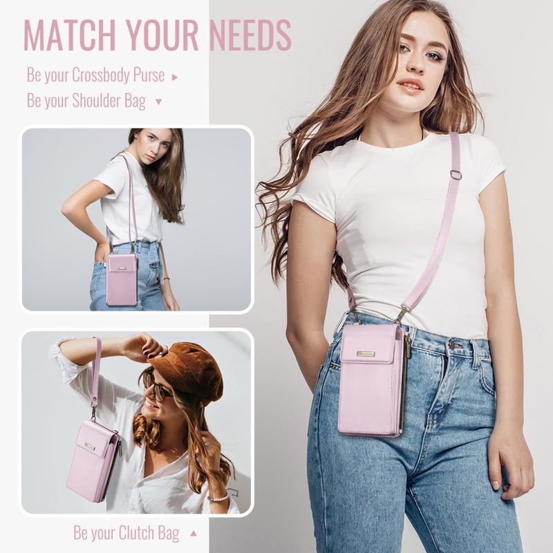 Caseme ME50 polyuretan Crossbody Phone Bag är en snygg och funktionell accessoar som är utformad för bekvämlighet och säkerhet. Denna universella telefonväska har RFID-blockerande teknik för att skydda dina kort från obehörig skanning, och den har flera fack för din telefon, kontanter och kort. Det justerbara armbandet gör att du kan bära den handsfree, vilket gör den perfekt för daglig användning, resor eller shopping. Denna svarta telefonväska är tillverkad av högkvalitativ polyuretan och kombinerar elegans med praktiska egenskaper.