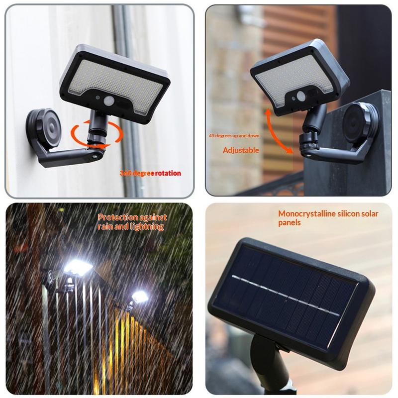 CCP0144 Solcellsdriven vägglampa med 92 lysdioder och rörelsesensor - IP65-klassad, vattentät solcellsdriven trädgårdslampa för utomhusbruk med 360° justerbar design