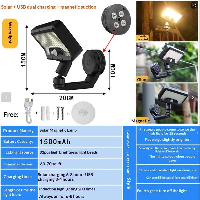 Belys utomhusområden mer effektivt med den magnetiska vägglampan CCP0144 med 92 LED-lampor och rörelsesensor. Denna solcellslampa är utformad för trädgårdar, uteplatser, gångar, uppfarter, staket, entréer och andra utomhusutrymmen, och kombinerar smart rörelsedetektering, flexibel installation och väderbeständig konstruktion i en praktisk belysningslösning. Dess 92 LED-lampor ger stark belysning när du behöver det som mest, vilket bidrar till att förbättra både sikten och säkerheten utomhus.