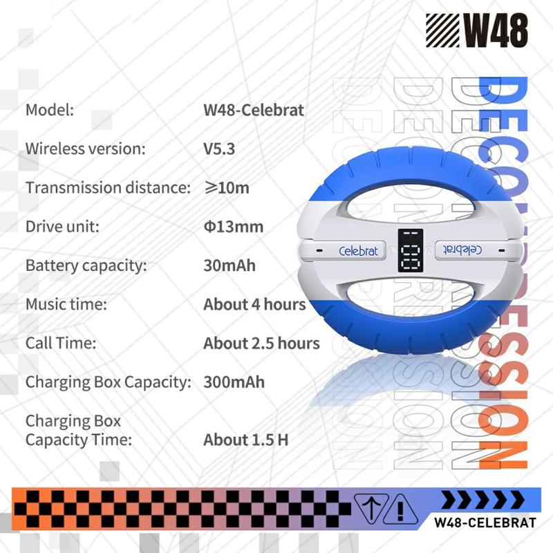 Celebrat W48 Handgrepp Trådlösa hörlurar med Bluetooth 5.3, 300mAh laddningsfodral