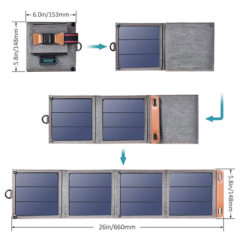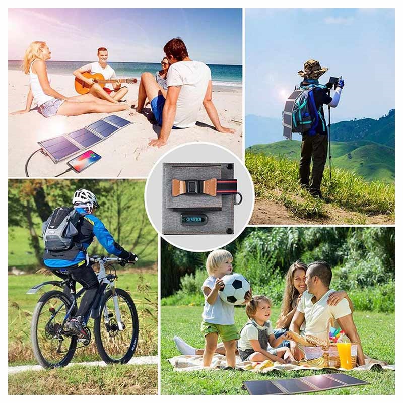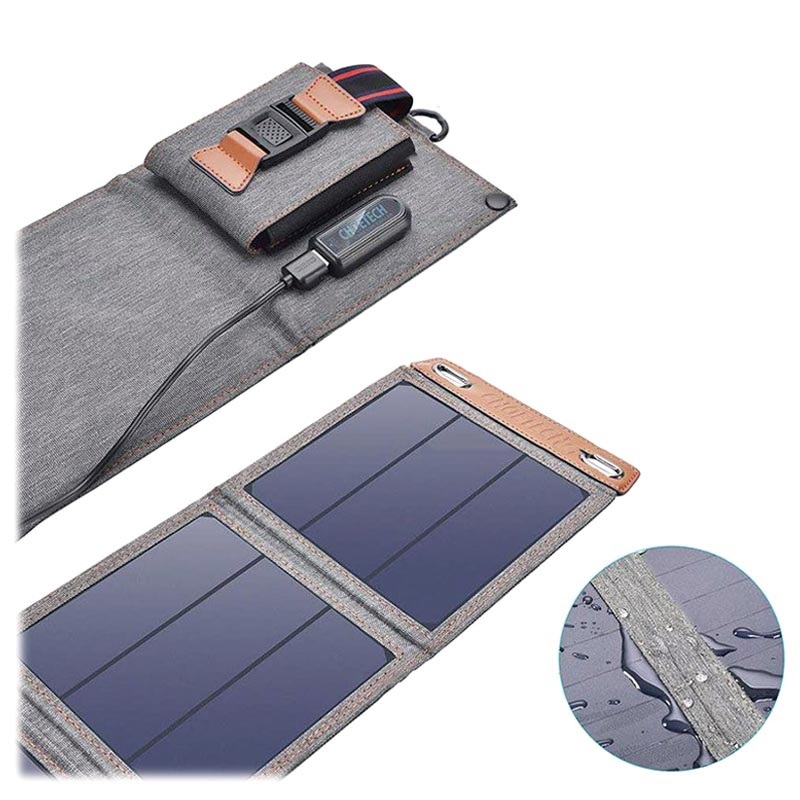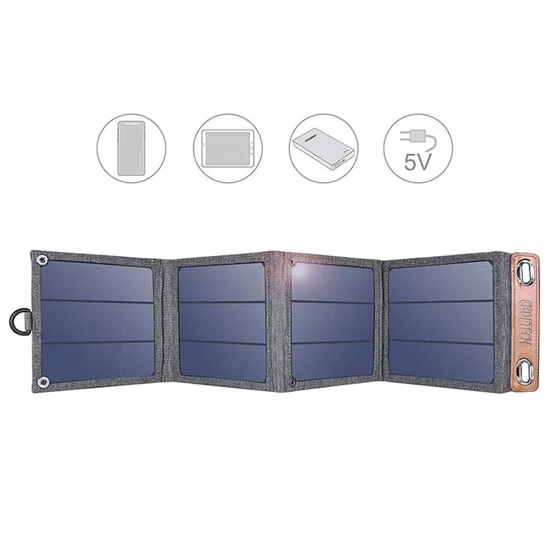 Choetech solpanel med en total effekt på 14W kan på ett säkert och effektivt sätt ladda upp dina enheter via en USB-A-port. Ladda på ett snabbt sätt upp din smartphone, surfplatta, GPS, digitalkamera, MP3-spelare eller powerbank med hjälp av energin från solen. Ett inbyggt smart chip kommer automatiskt känna av enhetens förmåga och leverera optimal laddning för att garantera en säker laddning. Choetech solenergiladdare är perfekt för utomhusaktiviteter, så som camping, klättring eller cykling och tack vare att panelerna är vattentäta kan du ta med dem i ryggsäcken i alla väderförhållanden.