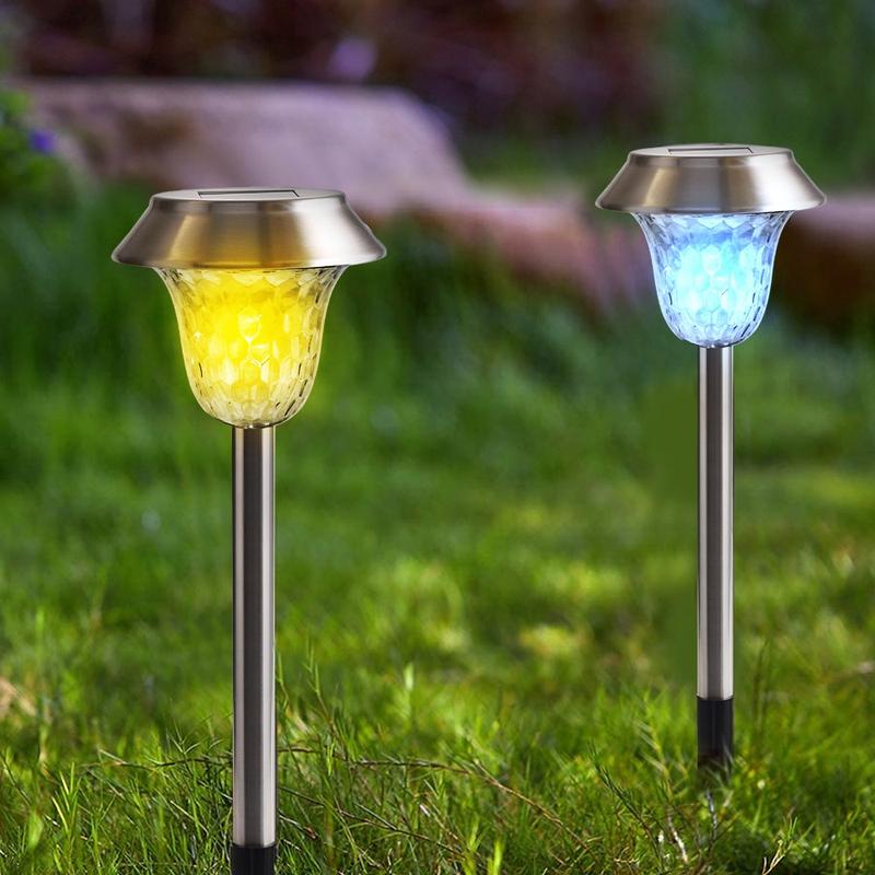 Väderbeständiga solcellslampor för trädgården som automatiskt växlar från laddning på dagen till sken på natten, vilket ger din gräsmatta, uteplats eller gård en enkel färgklick och säkerhet.