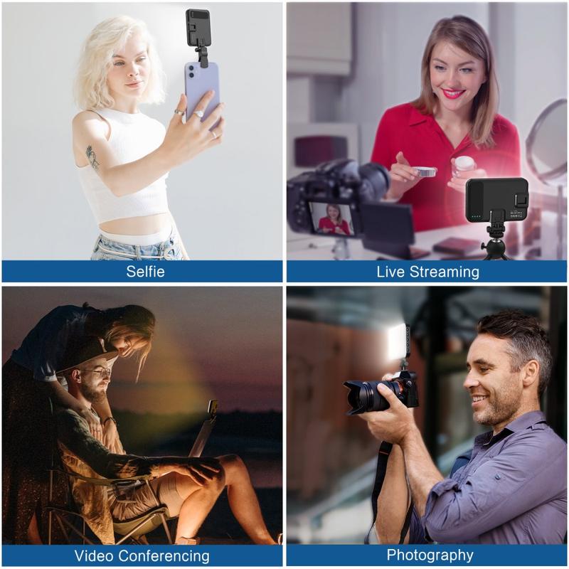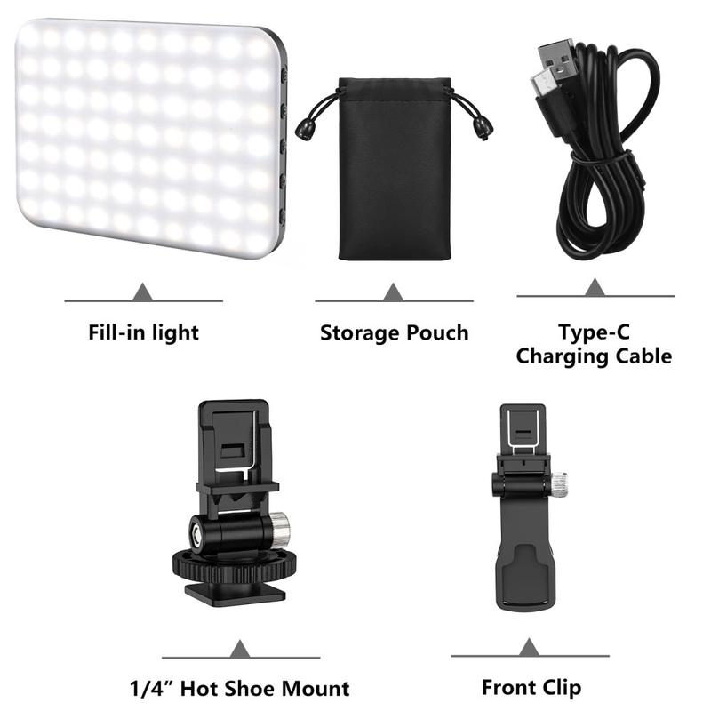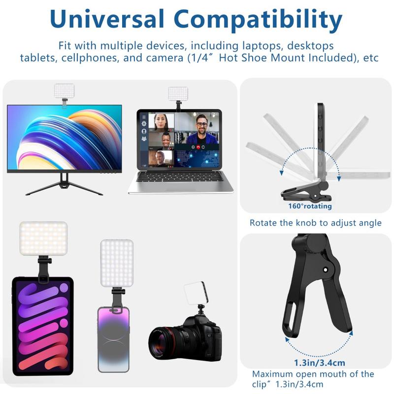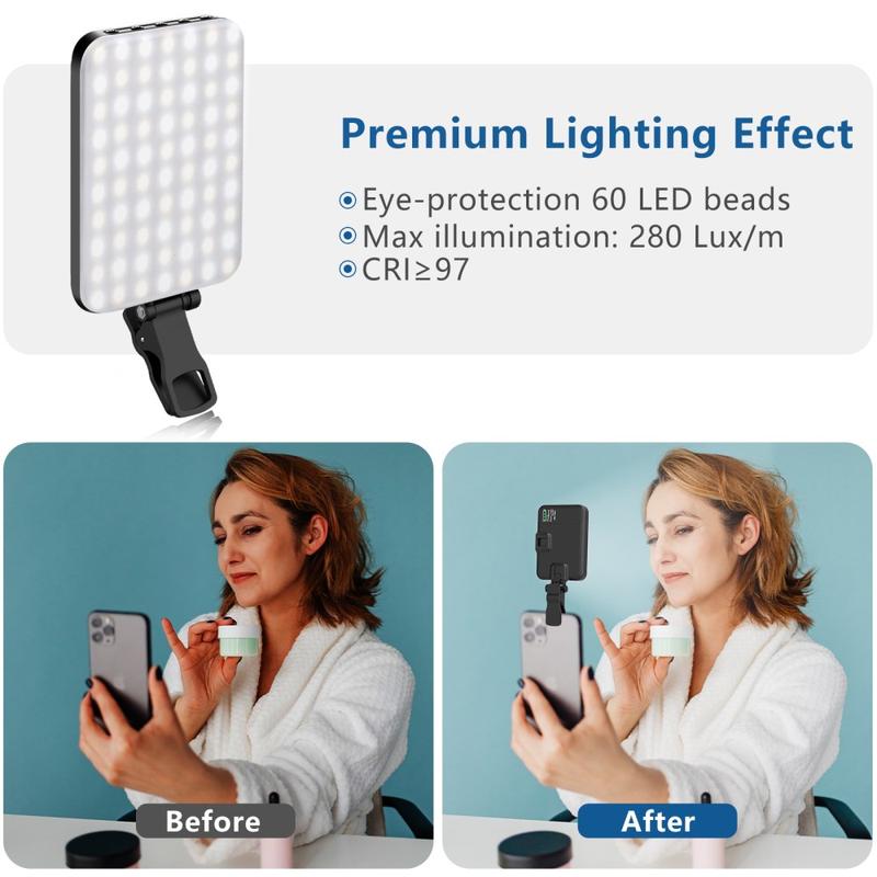 Uppladdningsbar 60-LED dimbar fyllnadslampa - 3-läges selfie- och livestreamingvideolampa för telefon, kamera och dator