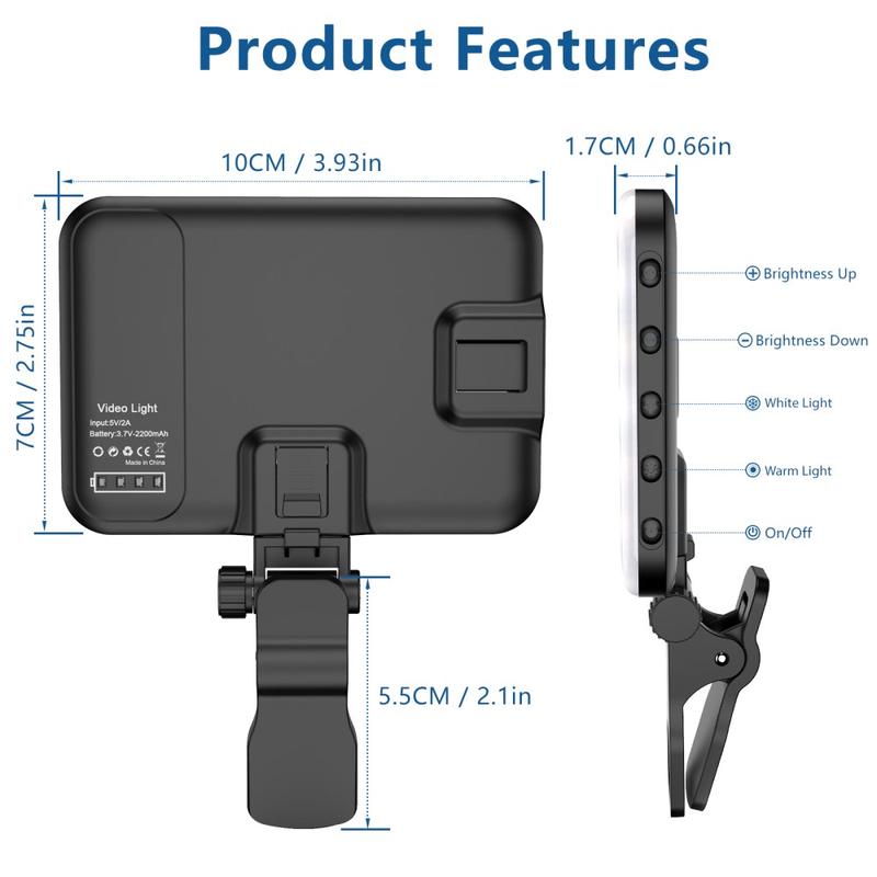 Detta LED-fyllnadsljus är utrustat med ett uppladdningsbart batteri på 2200 mAh och ger utökad användning för vlogging, streaming eller fotografering utan ständig laddning.