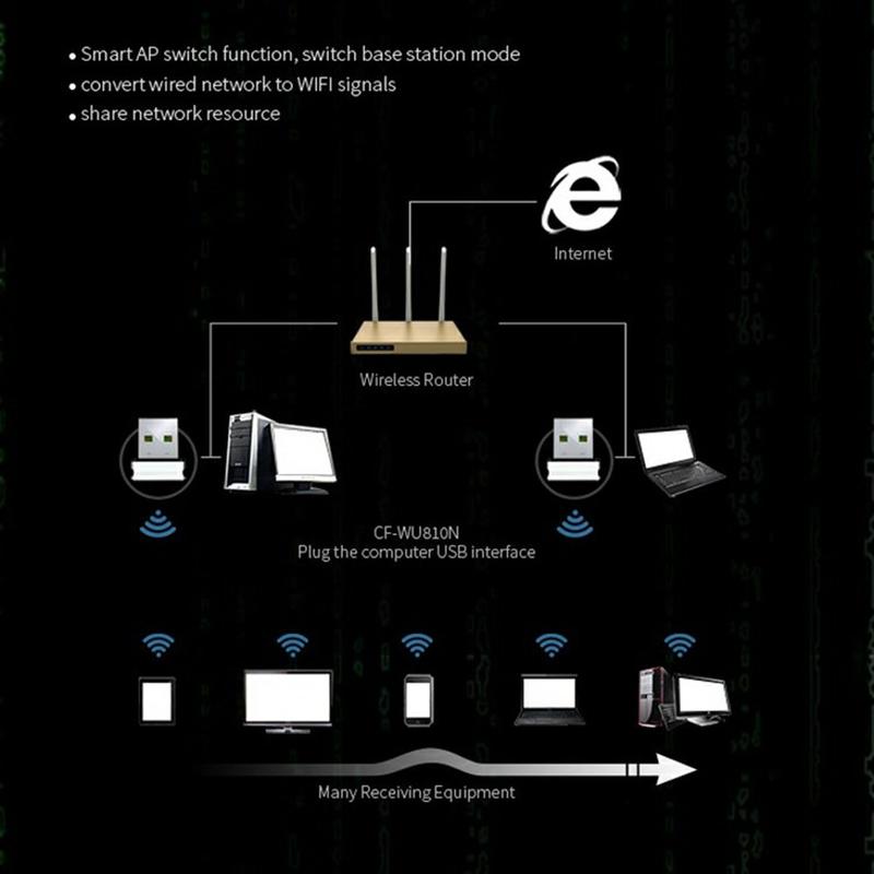 Få stabil och effektiv trådlös anslutning överallt med COMFAST CF-WU810N dual-band USB WiFi-adapter. Den är kompakt, lätt och enkel att installera och ger en tillförlitlig trådlös uppgradering för både stationära och bärbara datorer, med stöd för flera operativsystem och dual-band-frekvenser för optimal prestanda.