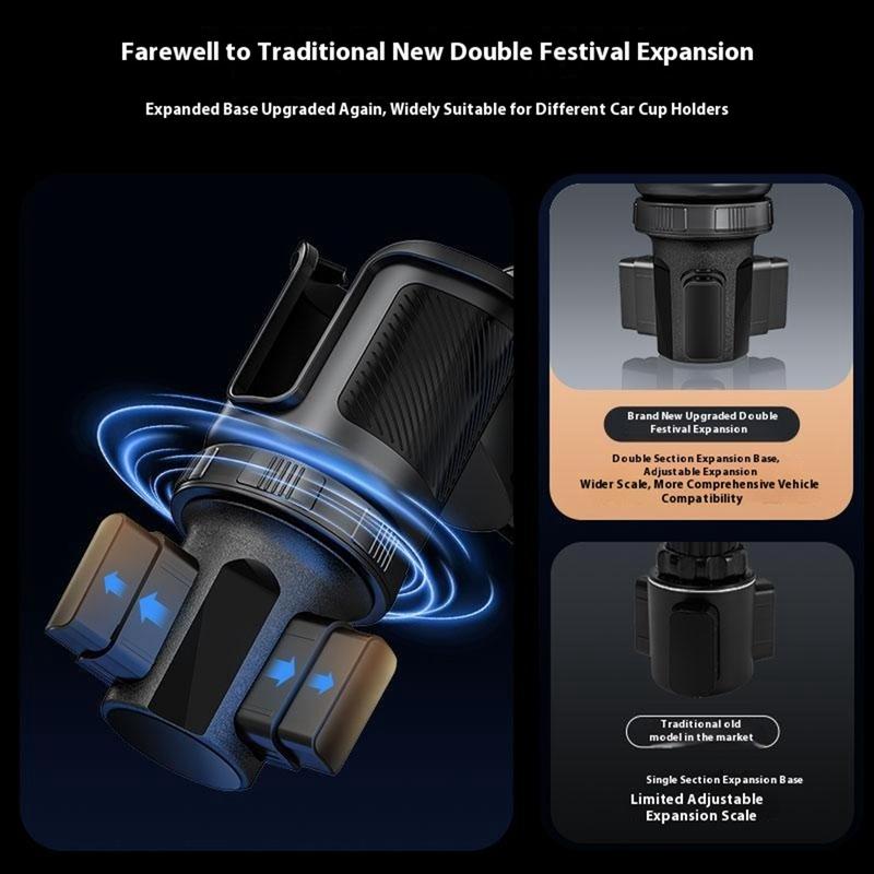 - Expanderbar bas i två steg: Vrid-och-lås-systemet gör att den passar perfekt i de flesta mugghållare i bilar för ökad stabilitet.