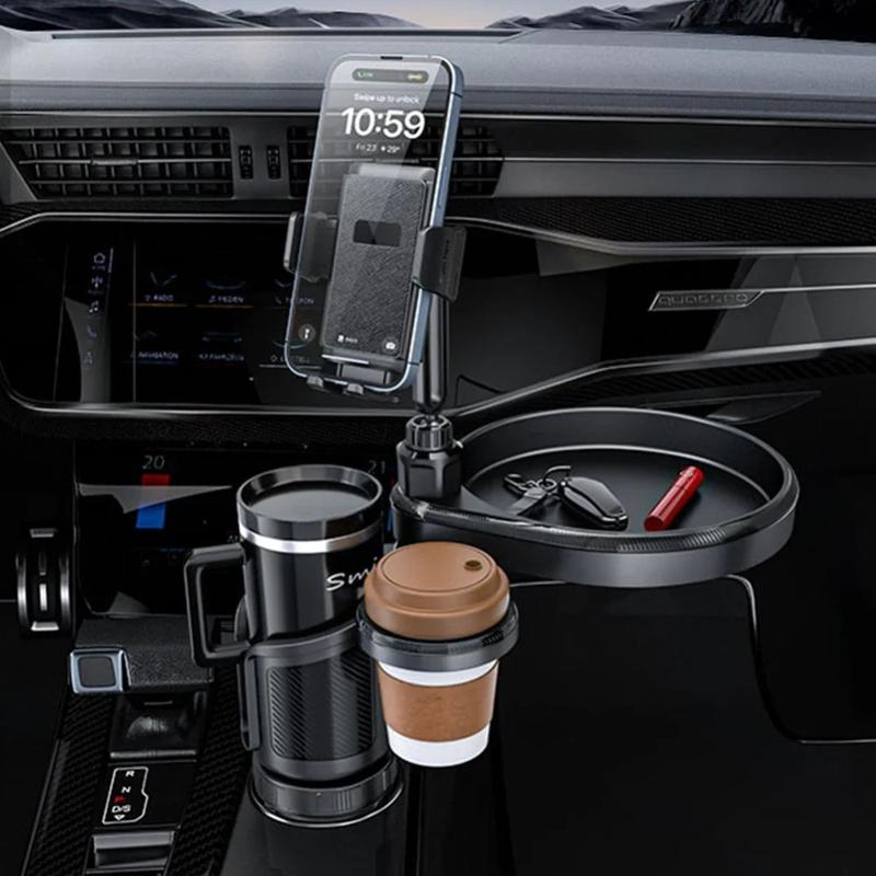 - 360° justerbar rotation: Helt roterbar design för perfekt placering av telefon, dryck eller bricka för både förare och passagerare.