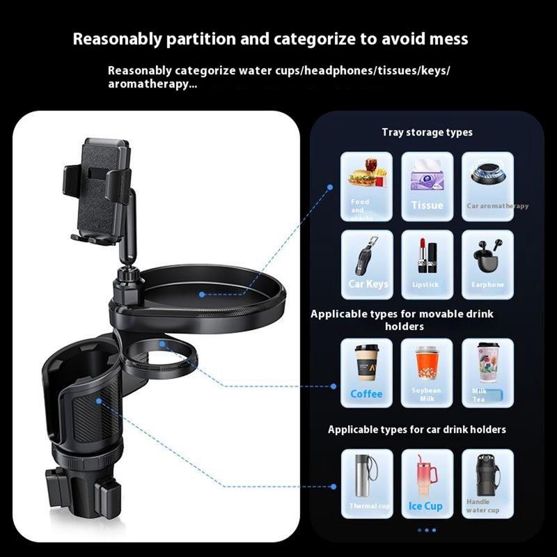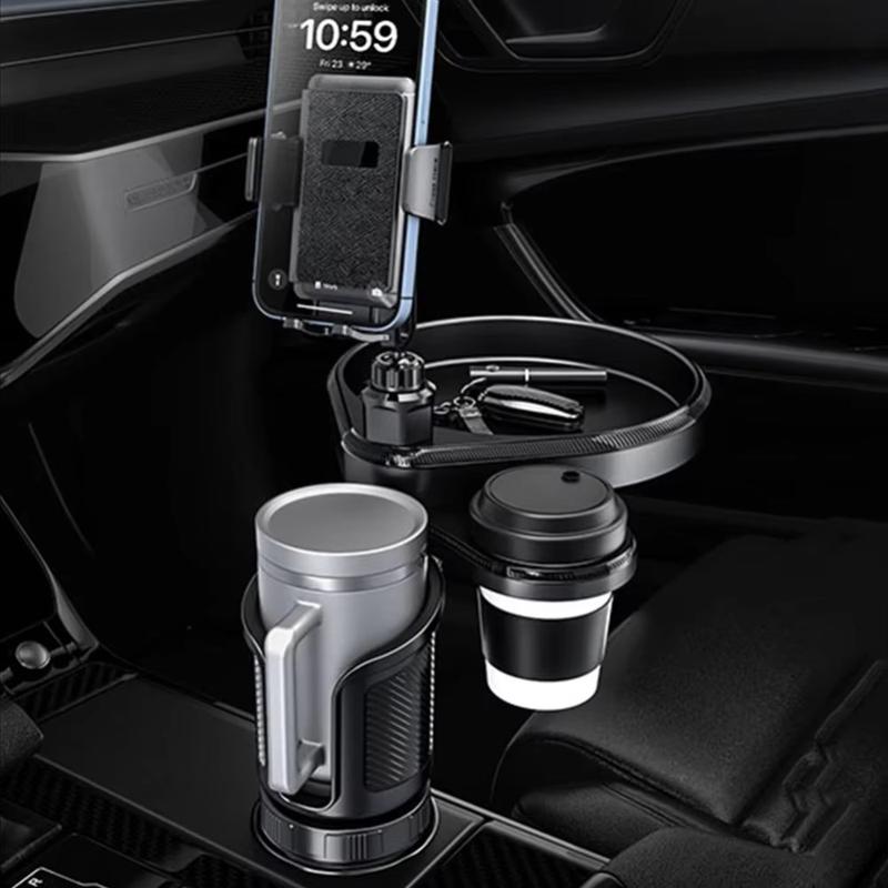 CP242 Car Cup Holder Expansion Tray förvandlar din bils mugghållare till en multifunktionell organisatör. Med sin hållbara konstruktion, smidiga rotation och universella passform är det en smart uppgradering för alla som värdesätter bekvämlighet, funktionalitet och komfort på varje resa.