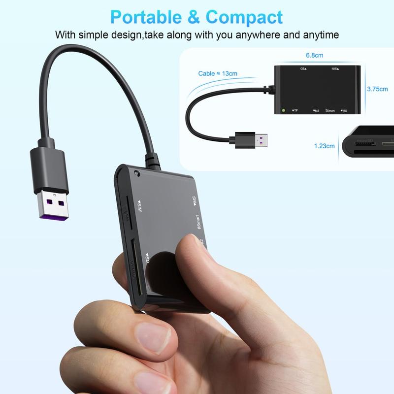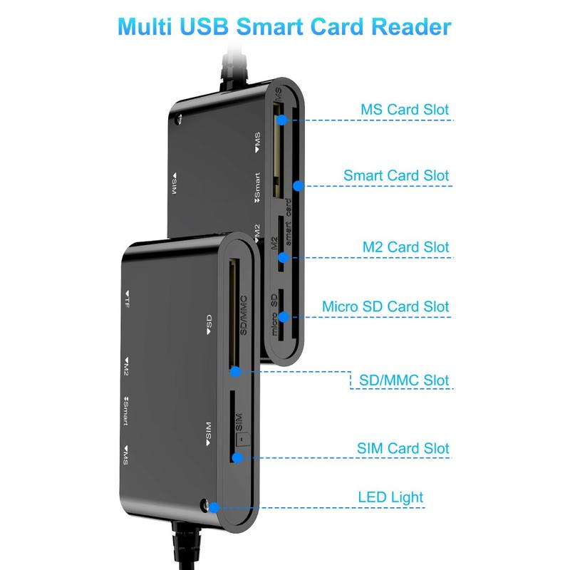 - 6-i-1-kortläsare - Stöder Smart-, MS-, M2-, TF-, SIM- och SD-kort för bred användbarhet.