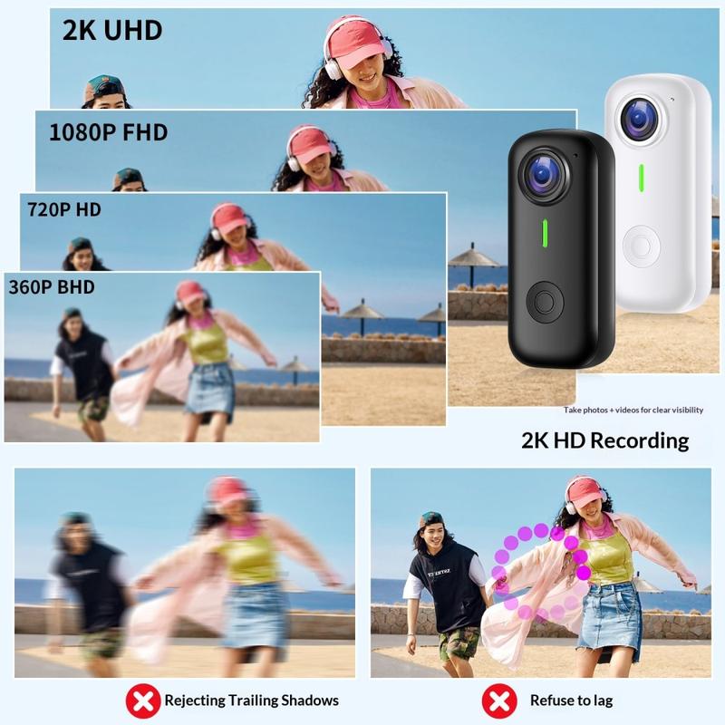 Fånga vardagens ögonblick utan att behöva hålla i kameran med minikameran D100 - en kompakt, bärbar kamera som är utformad för utomhusaktiviteter, filmning av husdjur, cykling, pendling och avslappnade förstapersonsvideor. Tack vare den extremt kompakta storleken är den lätt att ha med sig i fickan, bära i ett nyckelband, fästa på kläderna eller montera på ett husdjurshalsband, en cykel eller en hjälm utan att det märks någon extra vikt. Med 2K-videoinspelning, WiFi-appstyrning och ett 120-graders vidvinkelobjektiv ger den dig ett praktiskt sätt att spela in livet ur ett naturligt perspektiv.