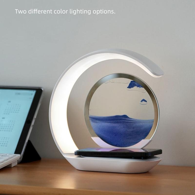 D25 3D Moving Sand Painting Night Light med trådlös laddare är perfekt för dem som uppskattar multifunktionell och elegant heminredning. Dess lugnande sandkonst och praktiska trådlösa laddningsfunktion gör den till ett utmärkt tillskott till alla rum, där konst och teknik blandas sömlöst.