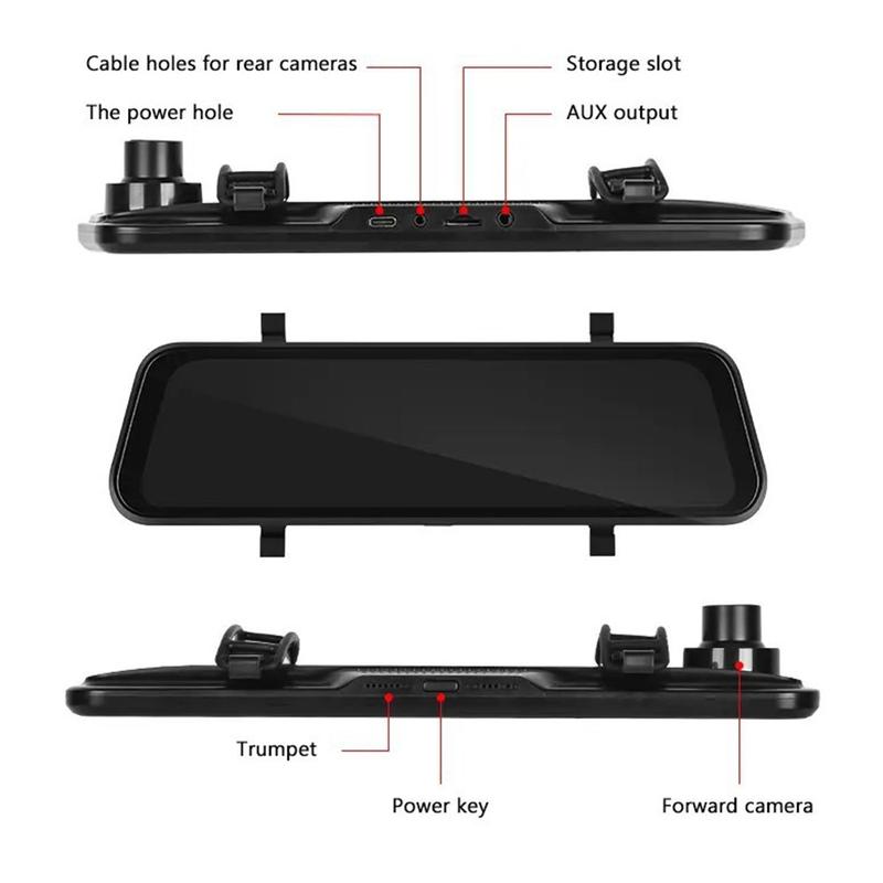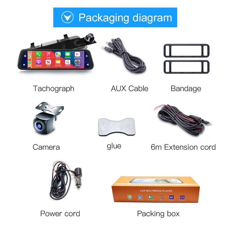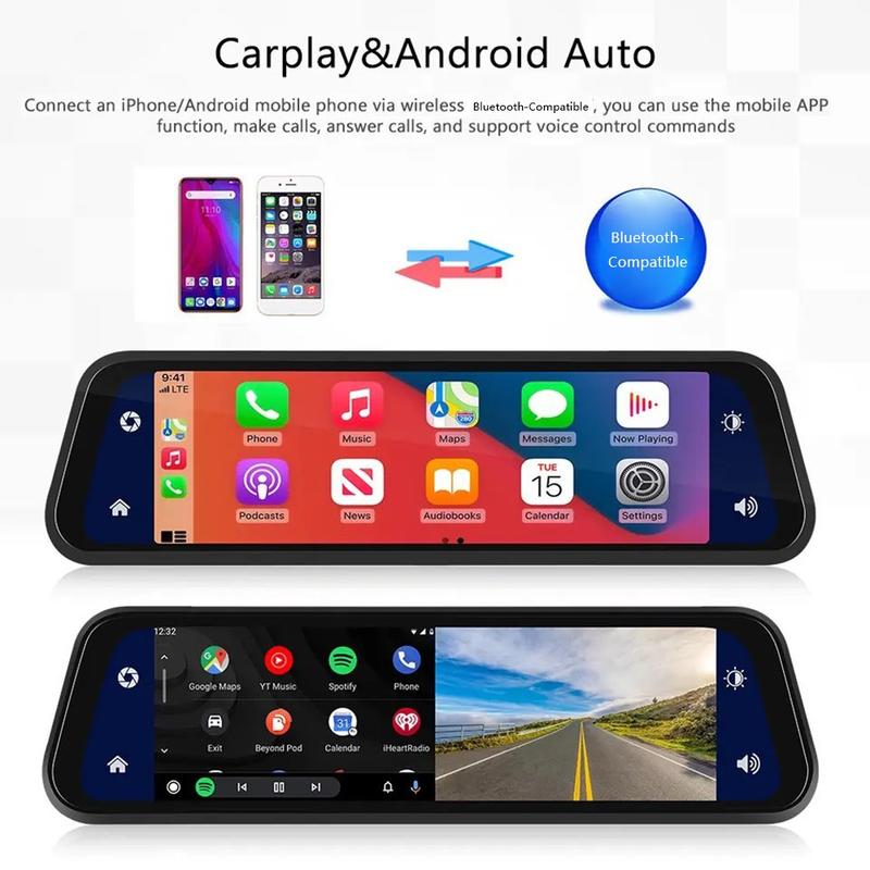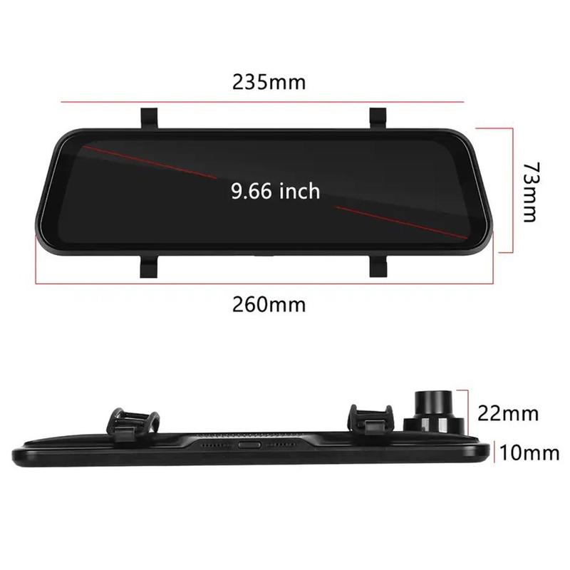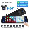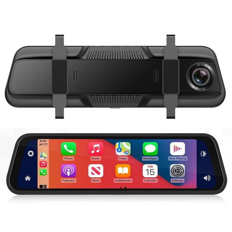 904 9.66" Dash Cam med pekskärm och CarPlay - Fullskärms streamingbackspegel 4K och 1080P DVR med dubbla linser