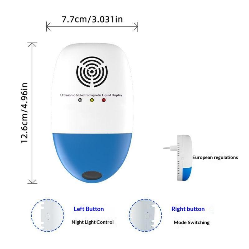 Den här repellern är giftfri, strålningsfri och kemikaliefri, vilket gör den säker för barn, husdjur och inomhusmiljöer. Dess kompakta design passar lätt in i alla rum utan att ta upp plats.