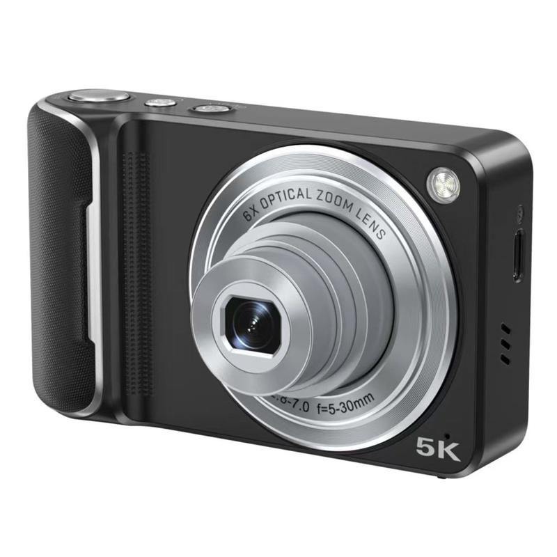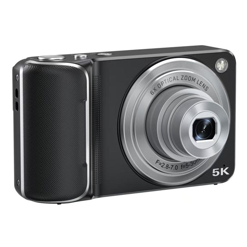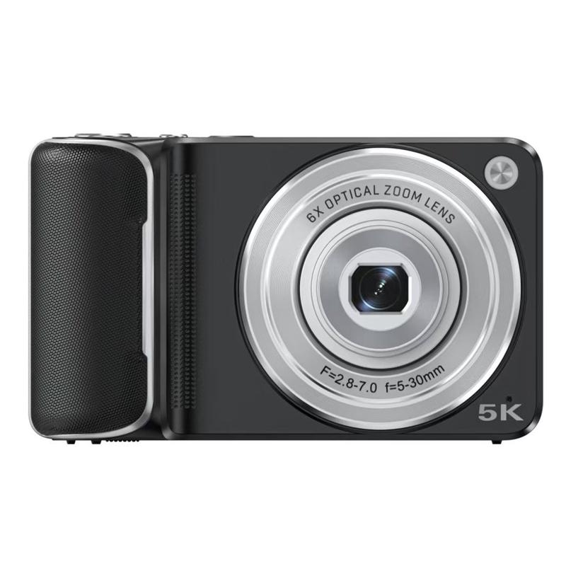 DC309X Mini-digitalkamera - 6X optisk zoom, dubbel lins, 5K-videobandspelare med 32GB-kort och 2 batterier