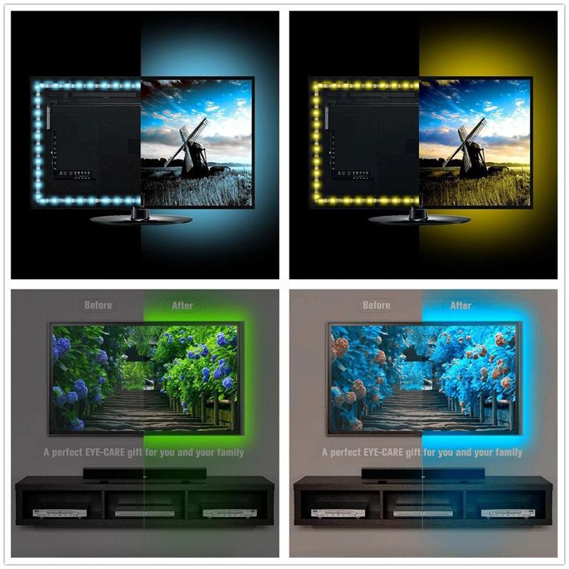 Lägg till en fantastisk bakgrundsbelysning till din skärm, TV, stationära dator, PC, minska ögonbelastningen som orsakas av skillnader i bildens ljusstyrka från filmscener, program och spel. LED-remsljuset kan också hjälpa till att göra den annorlunda färgen på din skärm som verkar rikare.