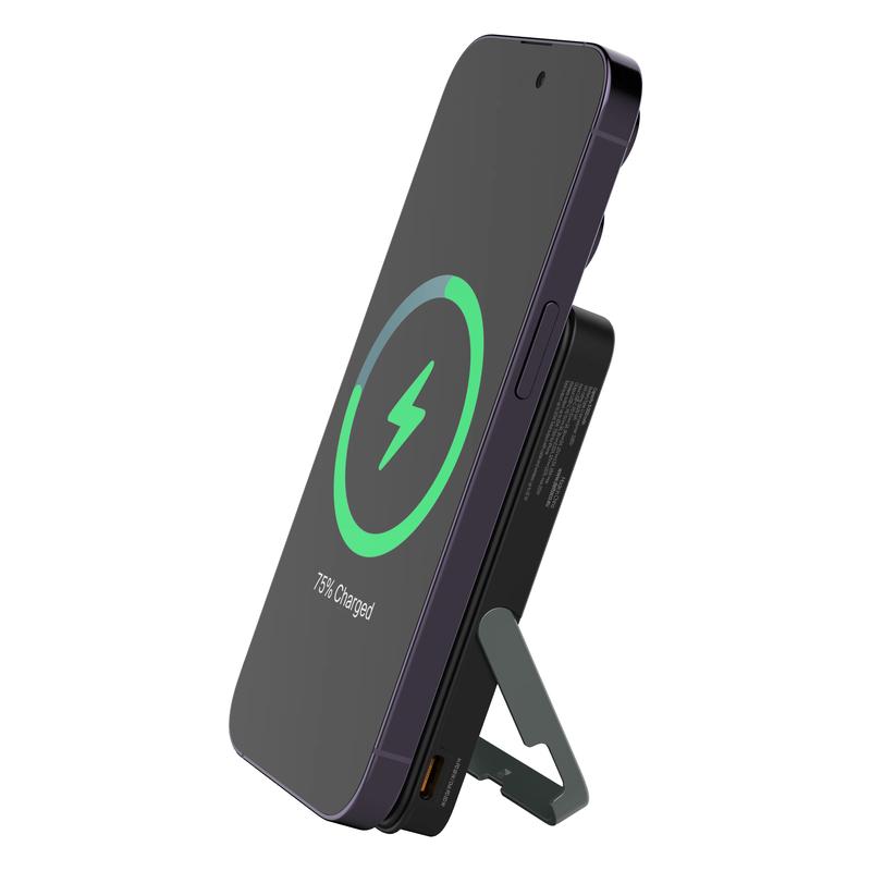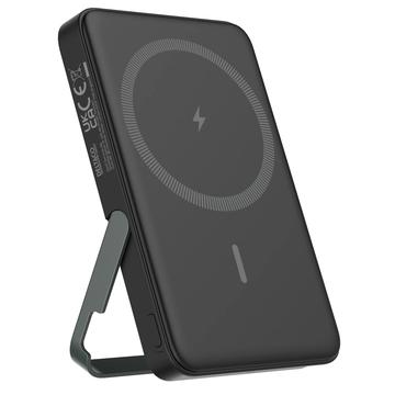 Med upp till 15 W trådlös laddning för kompatibla enheter och upp till 7,5 W för iPhones gör den det enkelt att ladda utan kablar. Den inbyggda magneten är kompatibel med Apples magnetiska lösning och liknande system, vilket hjälper till att hålla powerbanken på plats under användning. Det integrerade stället ger extra flexibilitet, vilket gör det enklare att titta på videor, surfa eller delta i samtal medan din telefon laddas.