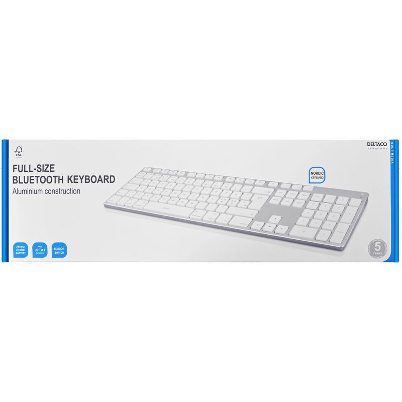 Deltaco TB-402 Bluetooth-tangentbord i aluminium med full storlek - Nordic