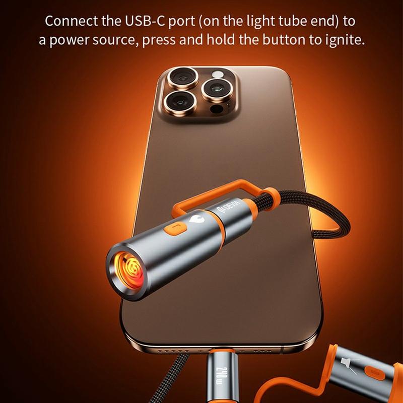 - Multifunktionell design: laddningskabel plus LED-lampa plus elektronisk tändare