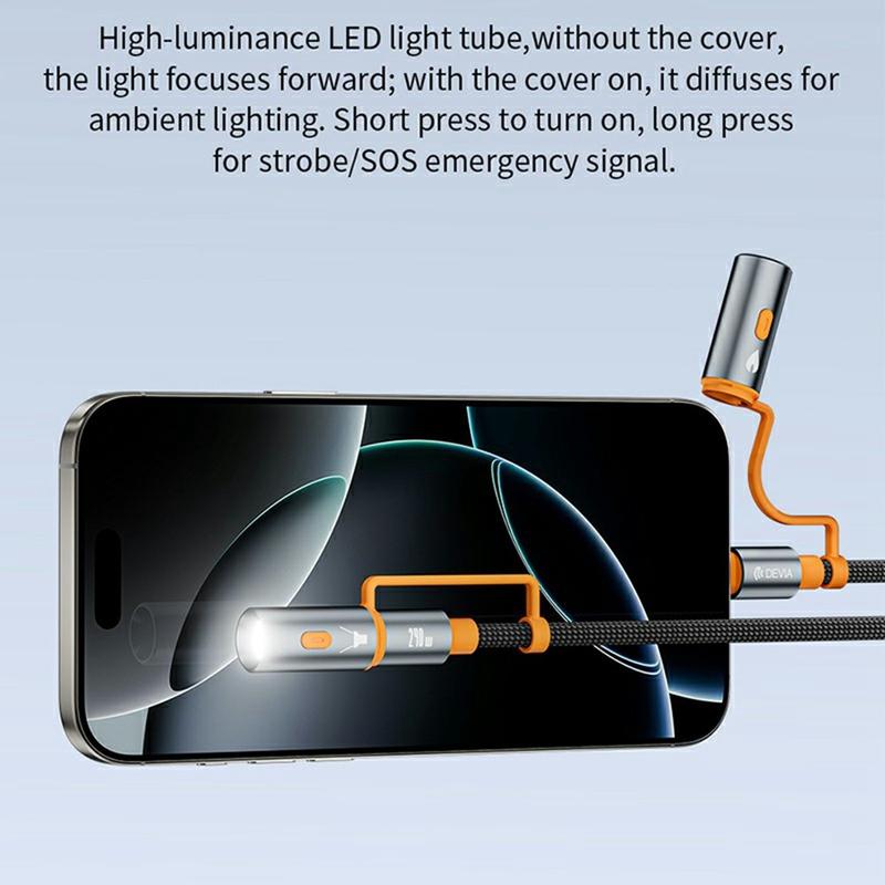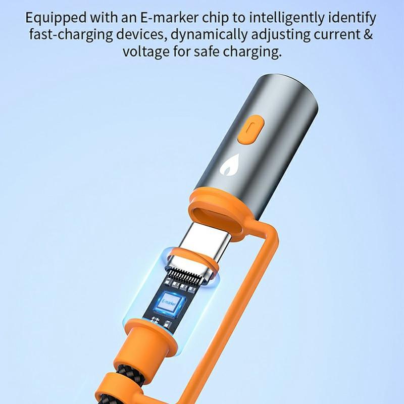Devia EC660 Ultra2 är en multifunktionell USB-C till USB-C-kabel som är utvecklad för personer som vill ha ett kompakt verktyg för laddning, synkronisering och bekvämlighet utomhus. Den stöder PD 3.1-snabbladdning upp till 240 W för kompatibla USB-C-enheter, samtidigt som den har en inbyggd LED-lampa och en elektronisk tändare för praktisk användning under resor och camping. Med ett E-Marker-chip för säkrare strömhantering och en slitstark flätad konstruktion är den utformad för daglig användning, nödsituationer och installationer på resande fot.