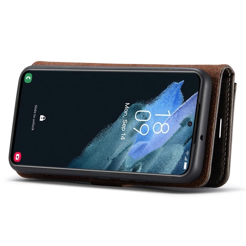 DG.Ming 2-i-1 plånboksfodral för Samsung Galaxy S23 5G är en utmärkt kombination av ett fodral och ett löstagbart magnetskal. Fodralet är multifunktionell, med kortplatser och en ficka för kontanter, hålls allt på en och samma plats. Snap-on stängningssystem i metall ger extra säkerhet och möjliggör en stativfunktion för bekväm visningsvinkel av media. Dess utmärkta design, belagd med spaltläder, ger en skön känsla i handen.