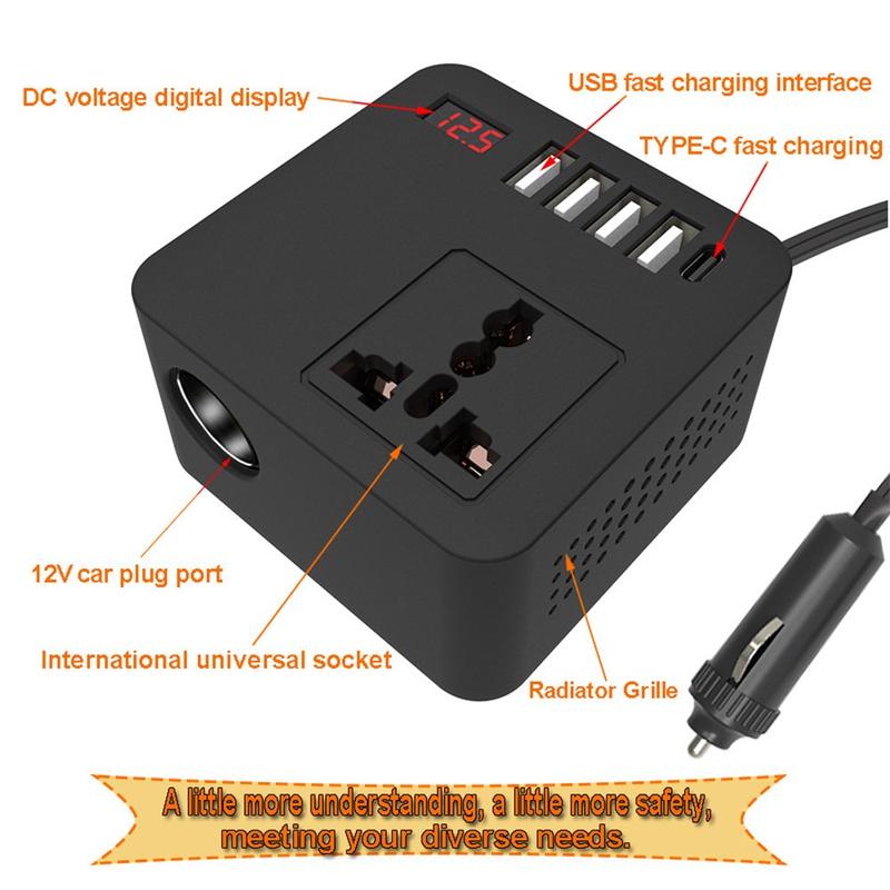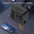 Digital display för bilströmomvandlare - 12V/24V DC till 110V/220V AC-omvandlare med USB-C, USB-A och AC-uttag 150W