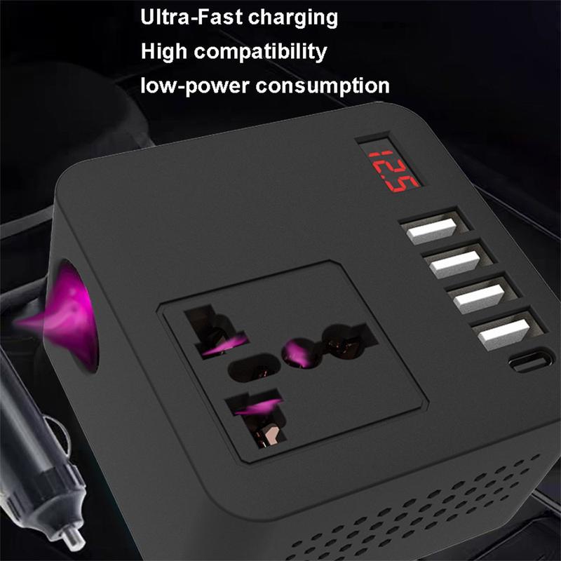 Digital Display Car Power Inverter erbjuder snabbladdning för flera enheter, intelligent kylning och säkerhet i en kompakt formfaktor. Oavsett om du pendlar eller campar utanför elnätet är det här ditt allt-i-ett-portabla kraftverk.
