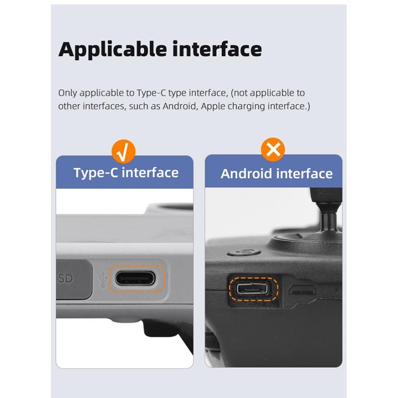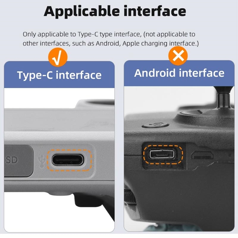 - Fäst i drönarens Type-C-port innan du vandrar på dammiga stigar för att filma solnedgångar.
