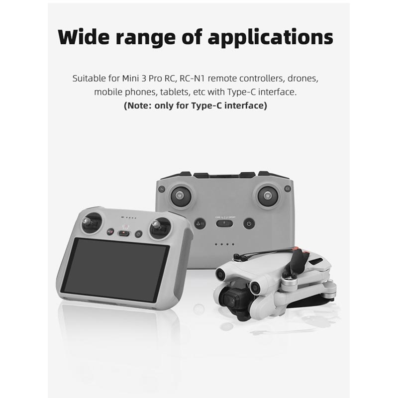 - Universell USB-C-storlek: skyddar DJI RC / RC-N1-telefoner, actionkameror, surfplattor, bärbara datorer och telefoner
