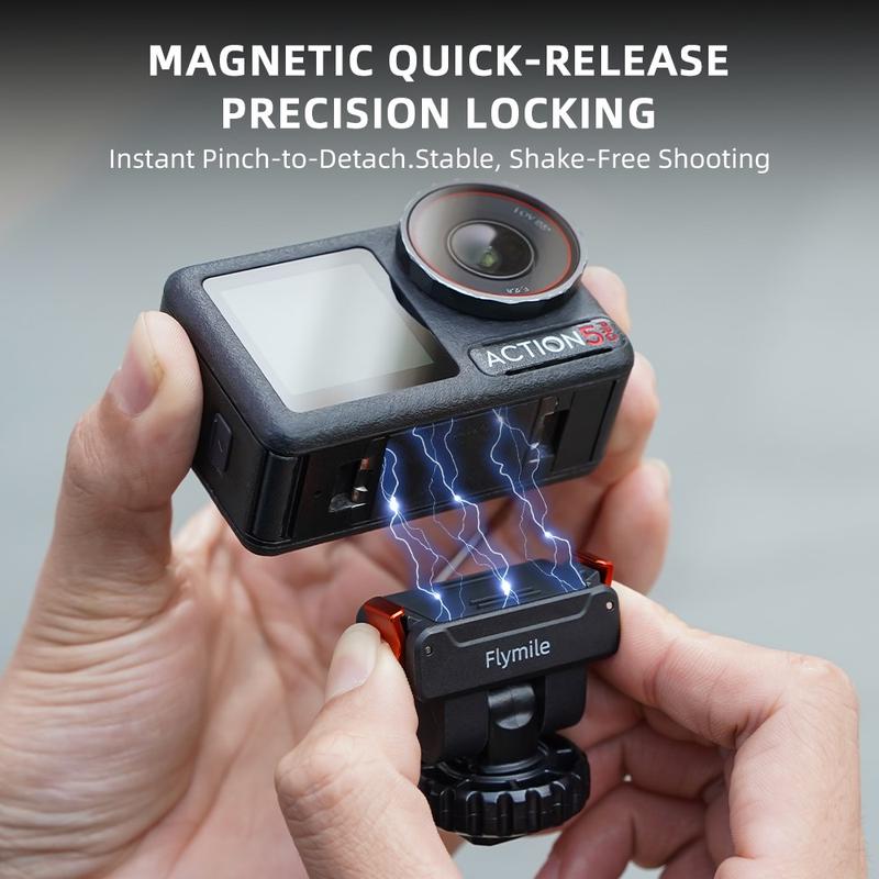 Flymile magnetfäste har en precis låsstruktur för snabb montering och demontering. Klämfunktionen ger ett fast grepp med minimal vickning - perfekt för stabila bilder under actionfilmning.