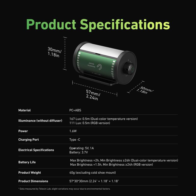 Om du vill ha en lätt och mångsidig videolampa för DJI Osmo-kameror, smartphones och kompakta filmuppsättningar är TELESIN MagFilm Fill Light ett utmärkt val. Den erbjuder justerbar belysning, exakt färgåtergivning och bärbar bekvämlighet i ett kompakt format som är gjort för vardaglig fotografering.