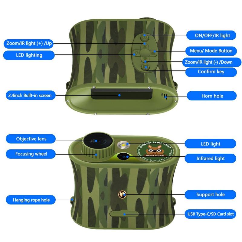 DT15 2.5K digital nattkikare med kamera för barn - 48 MP foton, 8x digital + 4x optisk zoom, 2,4" IPS-skärm, 850 nm IR (7 nivåer), USB-C, 2200 mAh batteri