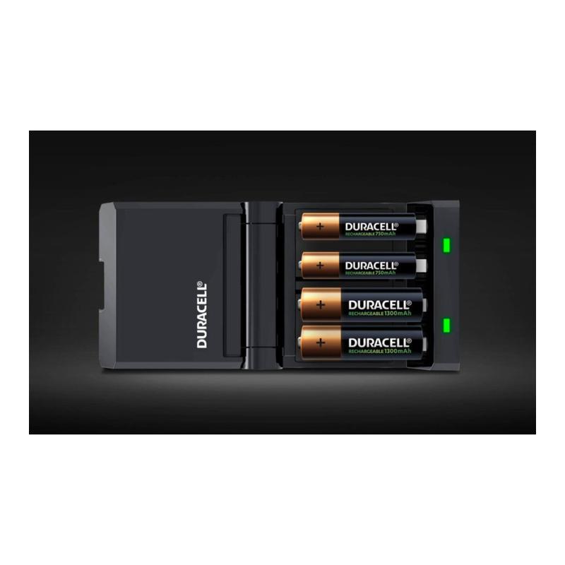 Duracell CEF27 höghastighets batteriladdare med 2x 750mAh AAA, 2x 1300mAh AA-batterier