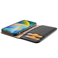 Detta DUX DUCIS fodral är tillverkat av äkta läder, PU-läder och TPU. Kortplatsen stöds av avancerad RFID-blockeringsteknik för att effektivt blockera signaler och skydda din personliga information från stöld.