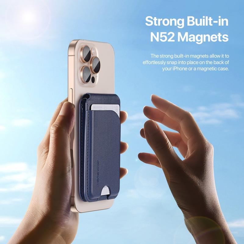 Det här magnetiska plånboksstativet erbjuder en smart balans mellan stil, kapacitet och mångsidighet. Det starka magnetfästet håller den stadigt på plats, medan det justerbara stativet ger bekvämlighet i vardagen. Med plats för flera kort och en raffinerad finish är det ett utmärkt val för användare som vill ha funktionalitet utan volym.