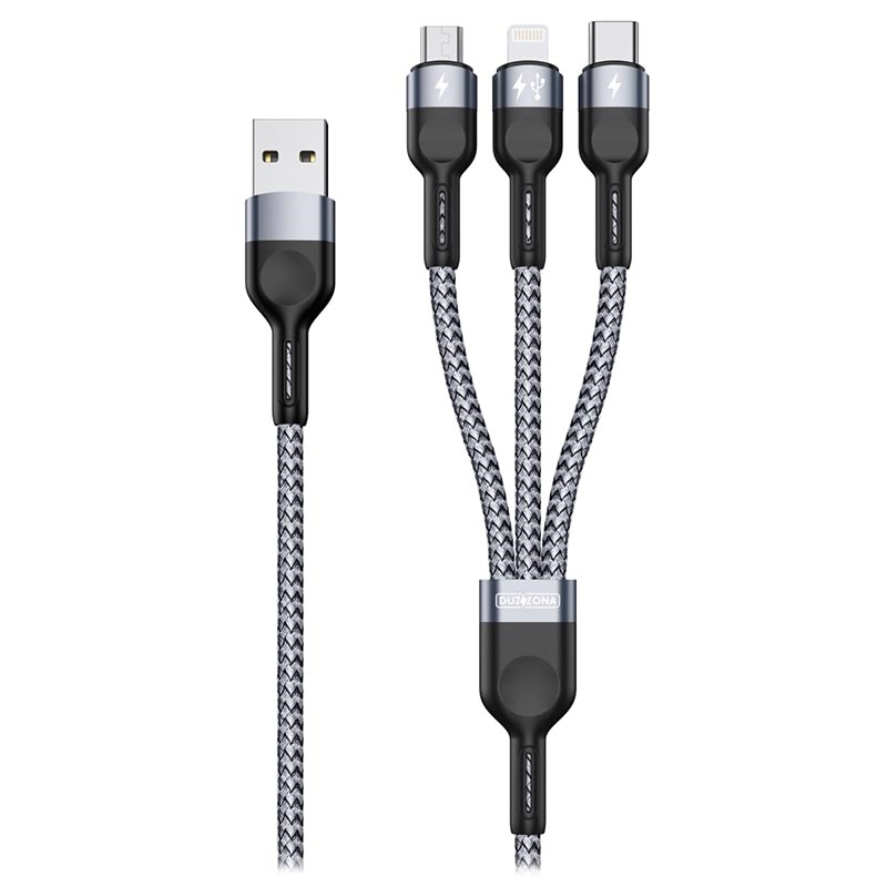 Ladda upp till tre enheter samtidigt med A3 series 3-i-1 laddningskabel från Duzzona.