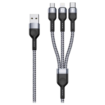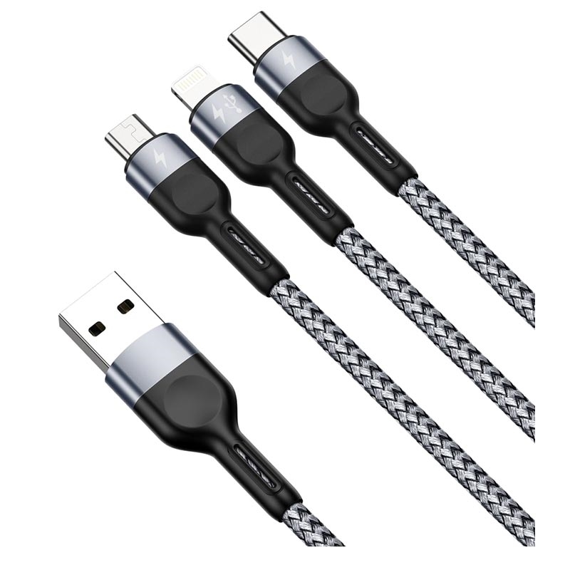 Duzzona A3 microUSB, Lightning, USB-C Kabel - micro USB, Lightning, USB Type-C, 2.4A, 1.2m, flätad