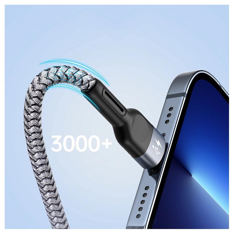 Kabeln själv är flätad, vilket gör den väldigt hållbar och resistent. Samtidigt stödjer kabeln laddning vid upp till 5V/2A och användning av förstklassiga material säker en säker och stabil spänning.