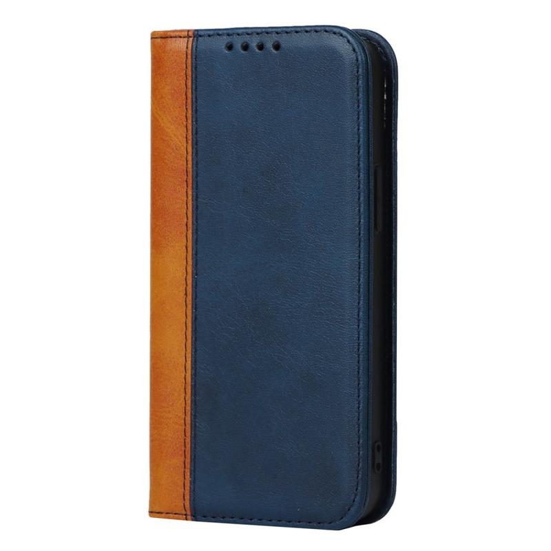För iPhone 14 Bi-color Splicing Magnetisk Automatisk Stängning PU-Läder Fallsäkert Plånboksfodral med Stativ