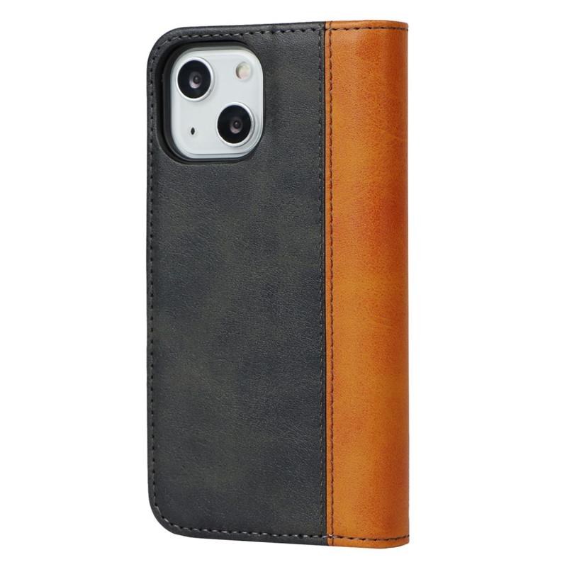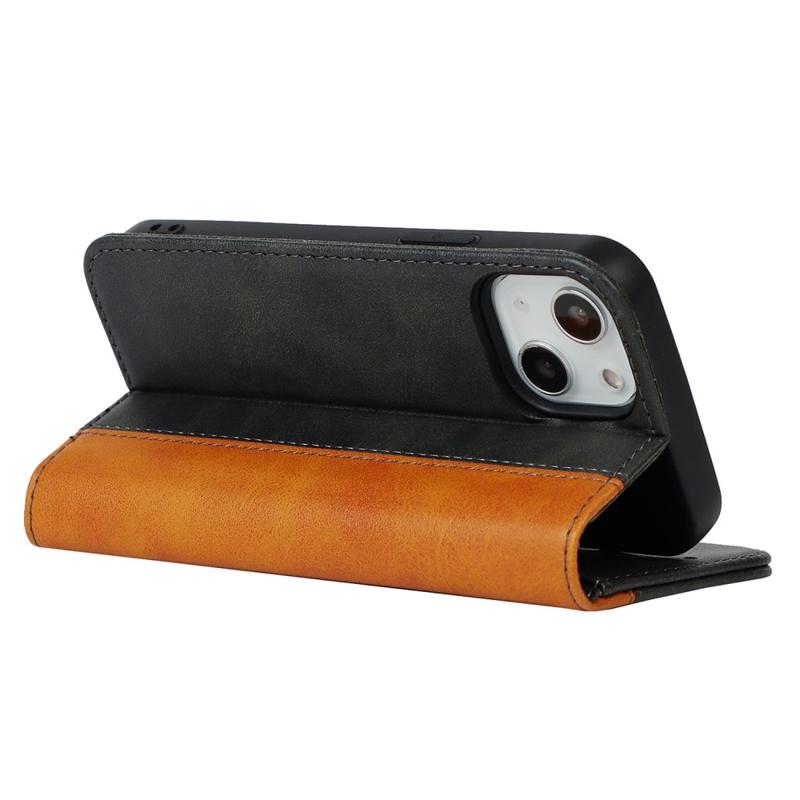 För iPhone 14 Bi-color Splicing Magnetisk Automatisk Stängning PU-Läder Fallsäkert Plånboksfodral med Stativ