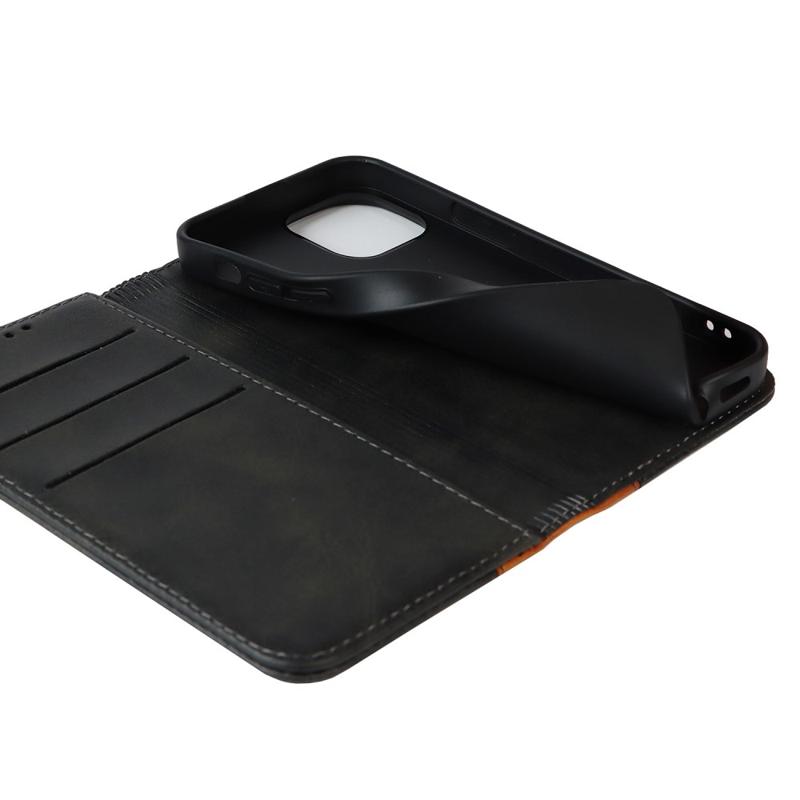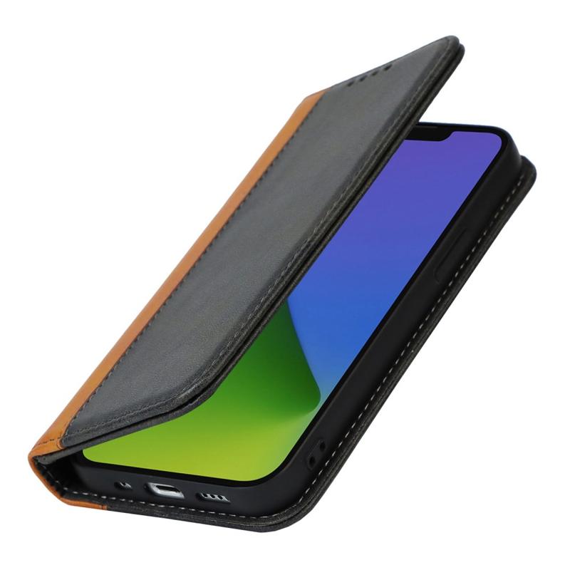 • För iPhone 14 Bi-color Splicing Magnetisk Automatisk Stängning PU-Läder Fallsäkert Plånboksfodral med Stativ