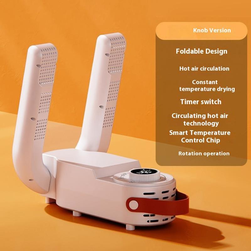 Håll skorna torra, varma och bekväma med denna hopfällbara elektriska skotork som är utformad för daglig användning i hemmet. Med hjälp av ett 360° värmecirkulationssystem torkar skorna jämnare från insidan - perfekt efter regn, snö, träning eller långa dagar på fötterna. Det utökade luftutloppet passar ett brett utbud av skor, från korta strumpor till längre stövlar, medan smart konstant temperaturkontroll hjälper till att torka effektivt utan att överhetta ömtåliga material. En enkel vridknapp ger dig 4 timeralternativ med automatisk avstängning, så att du kan ställa in den och glömma den för säker torkning över natten.