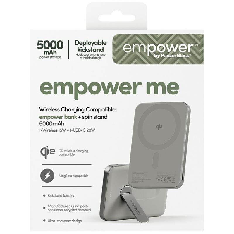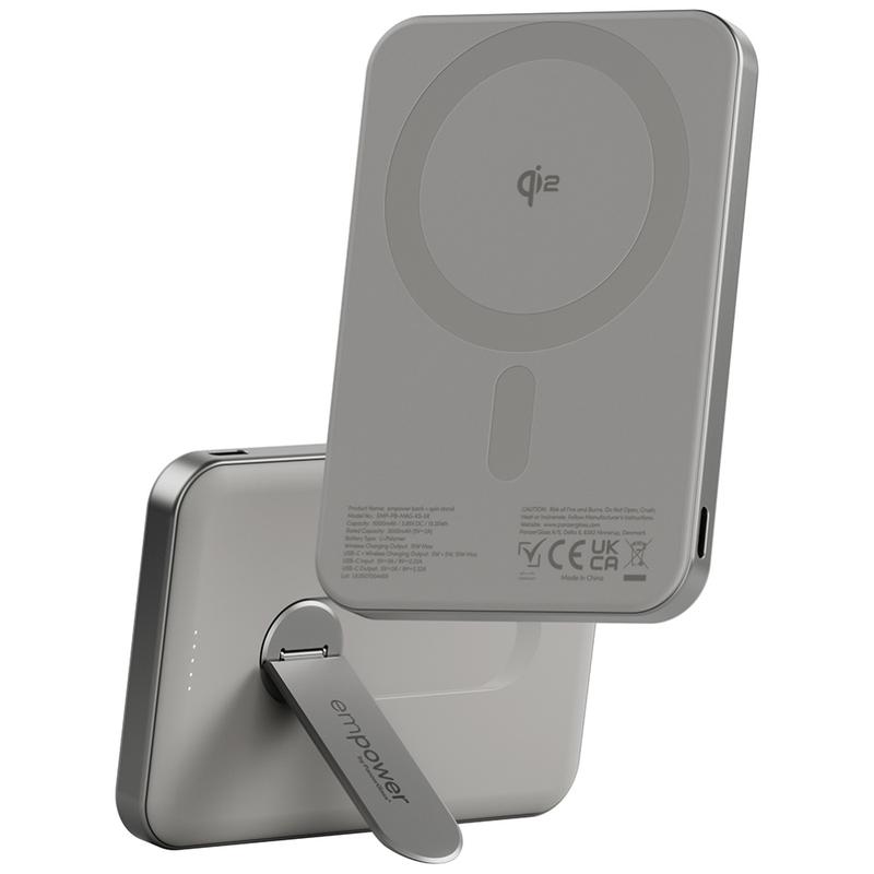 Empower by PanzerGlass magnetisk trådlös powerbank med snurrande stativ - 5000mAh Qi2- och MagSafe-kompatibel powerbank