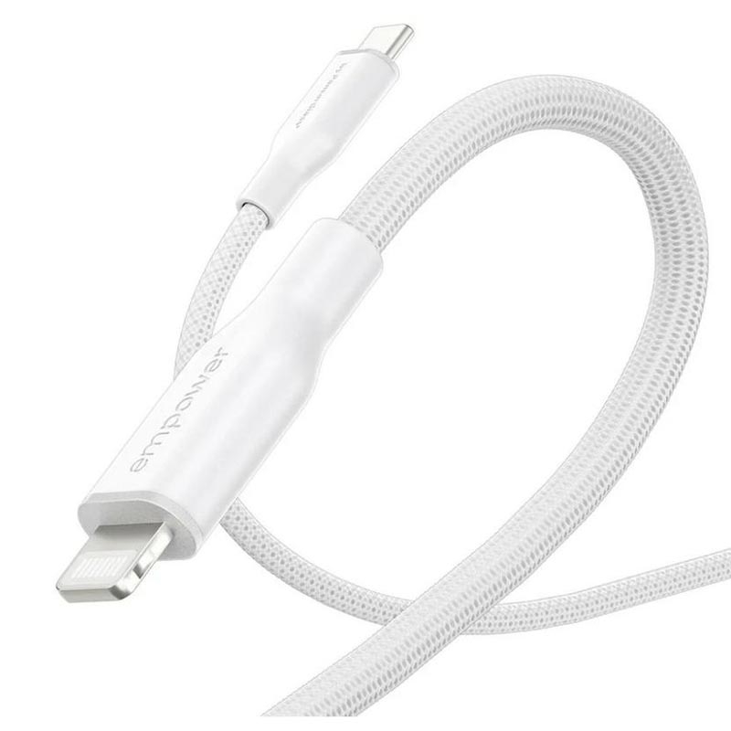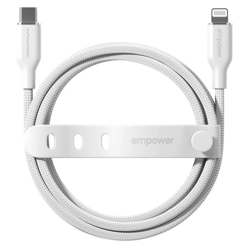 Empower by PanzerGlass Racing USB-C till Lightning-kabeln kombinerar prestanda och hållbarhet och erbjuder snabb laddning i en mjuk, flexibel och tålig design. Den är certifierad för Lightning-enheter och tillverkad av återvunna material, och är byggd för daglig användning utan kompromisser.