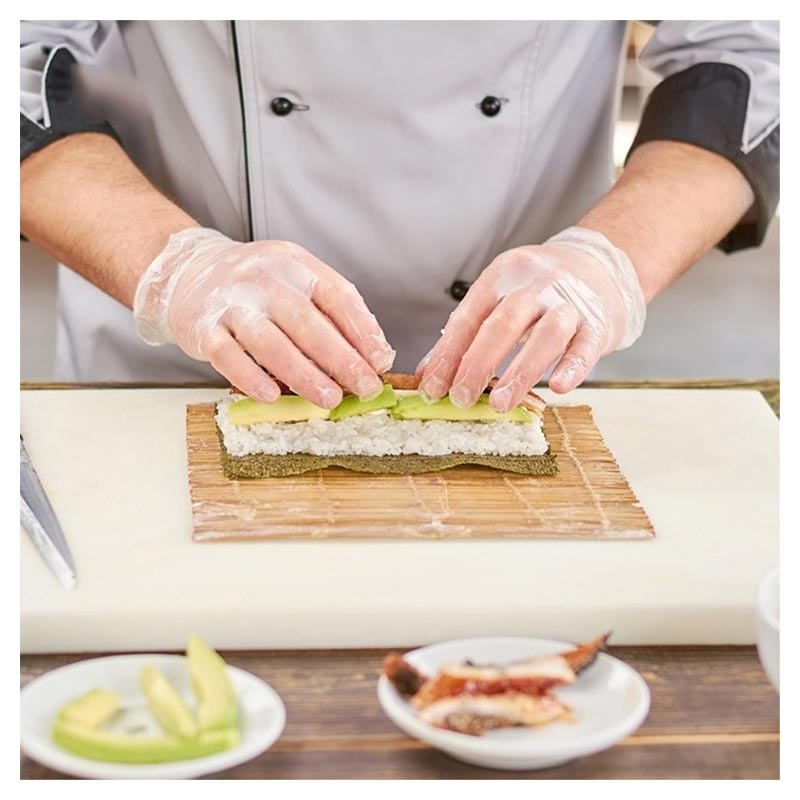 - Genomskinliga engångshandskar tillverkade av PVC