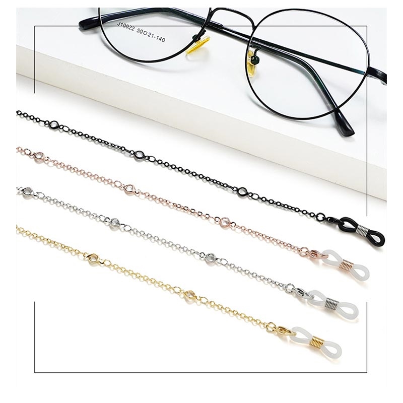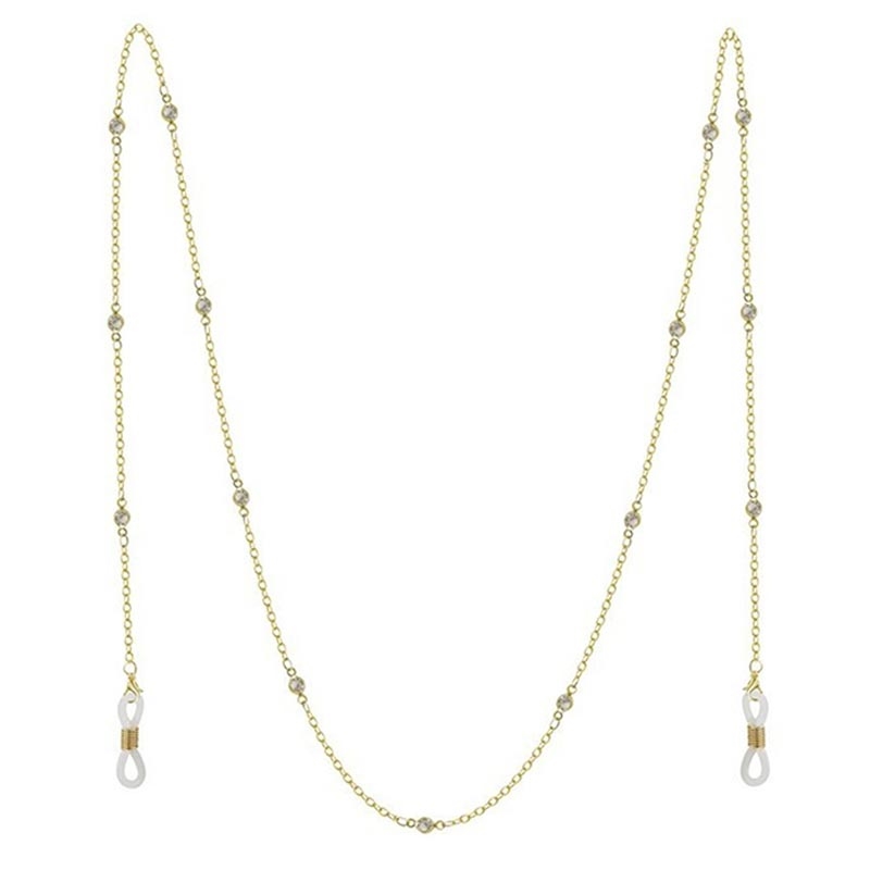 Håll glasögonen nära och stilen på topp. Denna lättviktskedja i legering håller fast läsglasögon, solglasögon eller vanliga bågar med halkfria silikonöglor och kan sedan användas som ett elegant halsband när linserna inte sitter kvar i ansiktet. Skjut metallpärljusteringarna för att klämma fast skalmarna ordentligt och rör dig handsfree genom arbete, sport eller resor utan att oroa dig för droppar.