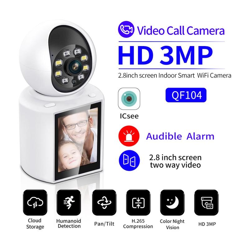 Se varje hörn av ett rum, prata med familjen och ta emot smarta varningar med en kompakt inomhuskamera. QF104 spelar in i skarpa 3MP, levererar verkligt tvåvägsljud och låter besökare starta ett videosamtal genom att trycka på en enda knapp på den inbyggda 2,8-tumsskärmen.